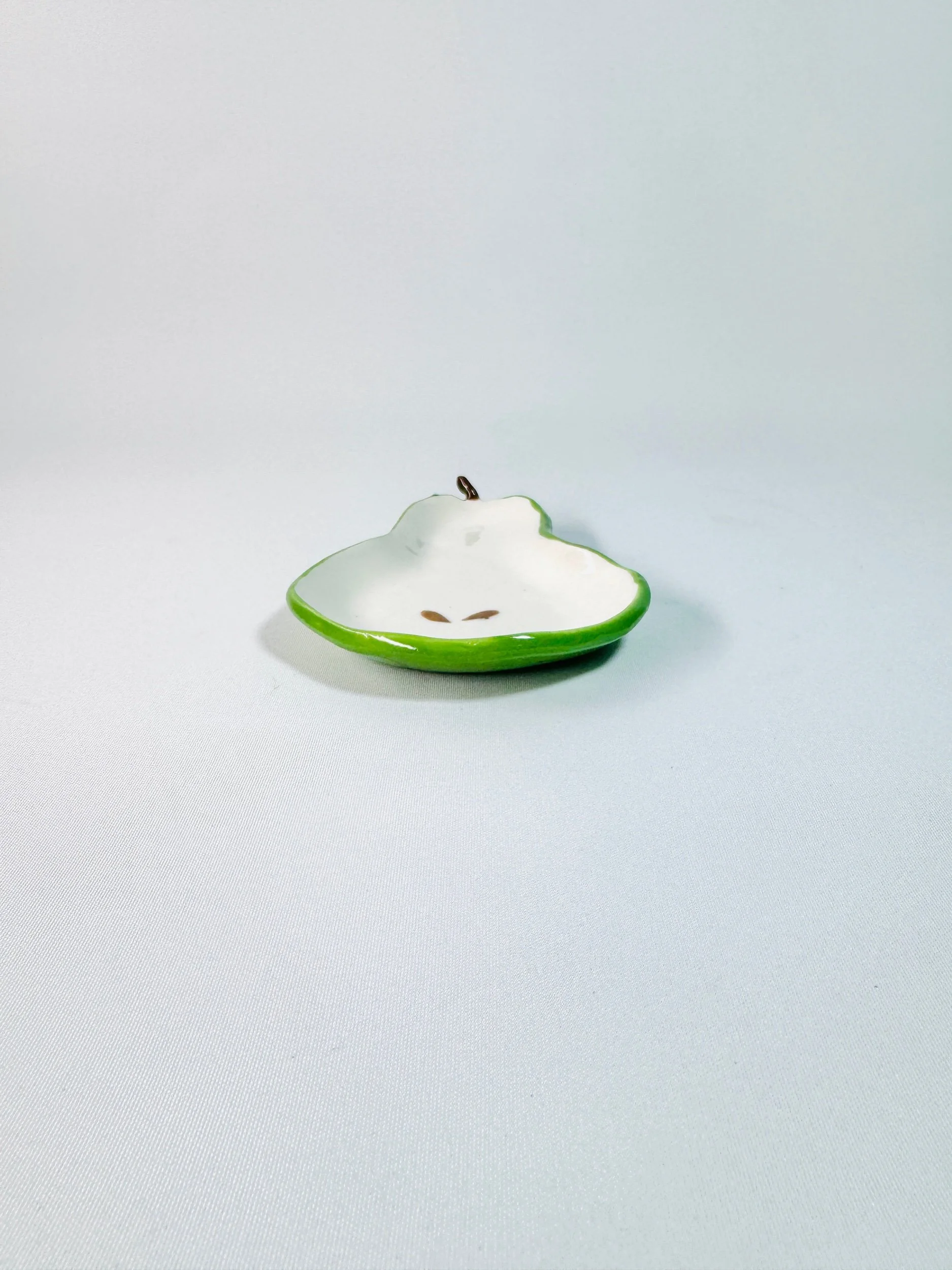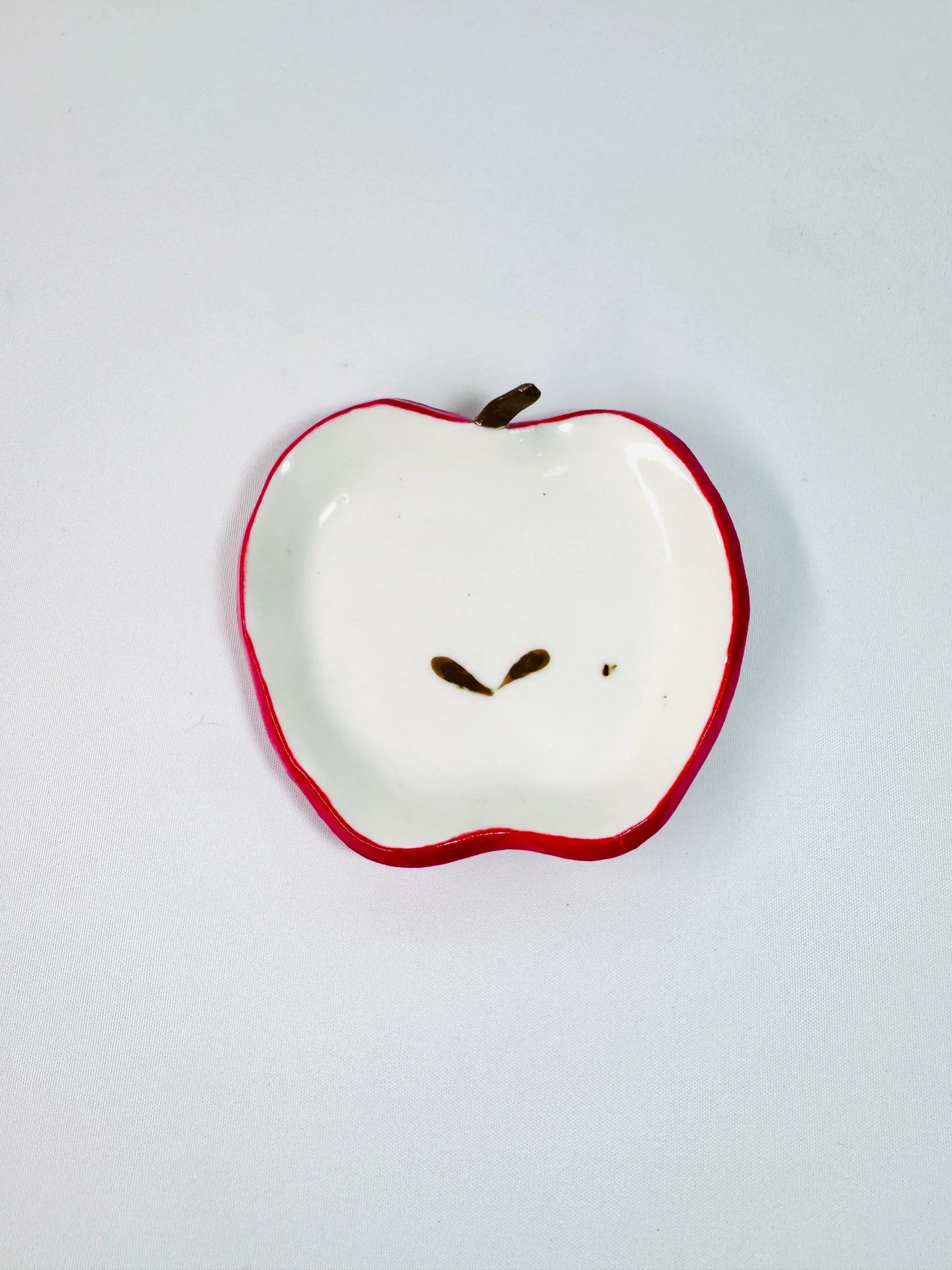 These shallow ceramic dishes are shaped like sliced apples and pears, featuring crisp coloured rims and a smooth white interior. Perfect for serving small treats, holding jewellery, or adding a playful accent to the table, each piece is handcrafted and priced at $20