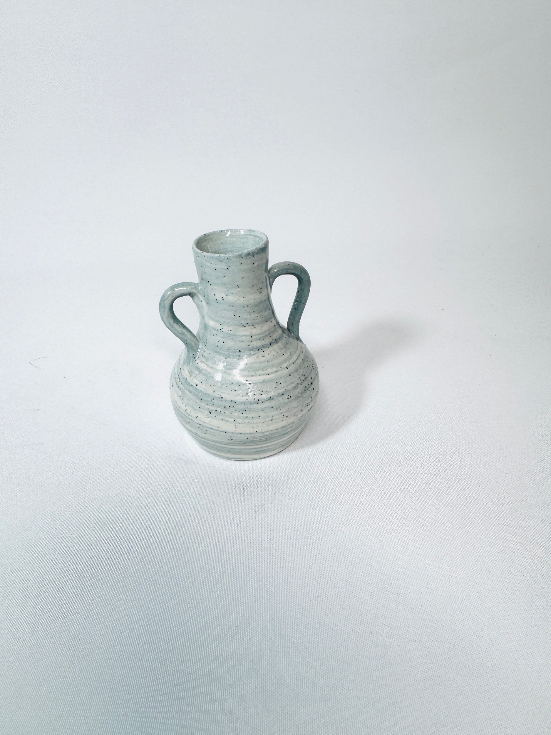 This mini ceramic vase features a fresh green-and-white finish and a softly rounded form. Perfect for a single stem or as a small decorative accent, it brings a light, cheerful touch to any space. Postage included