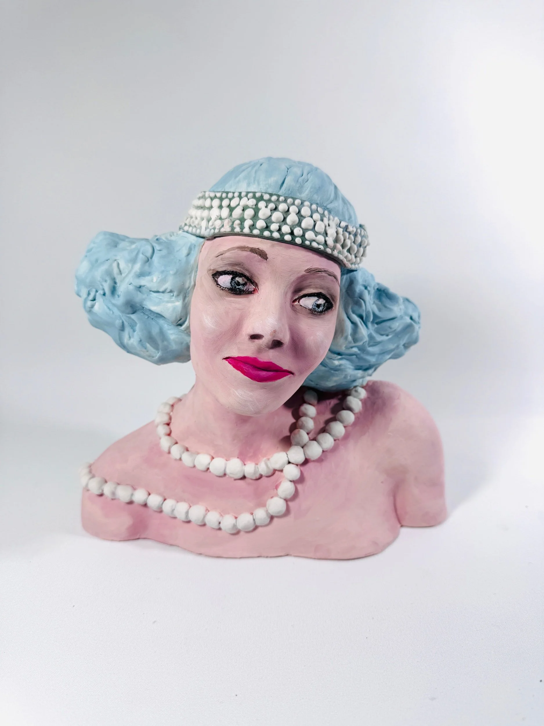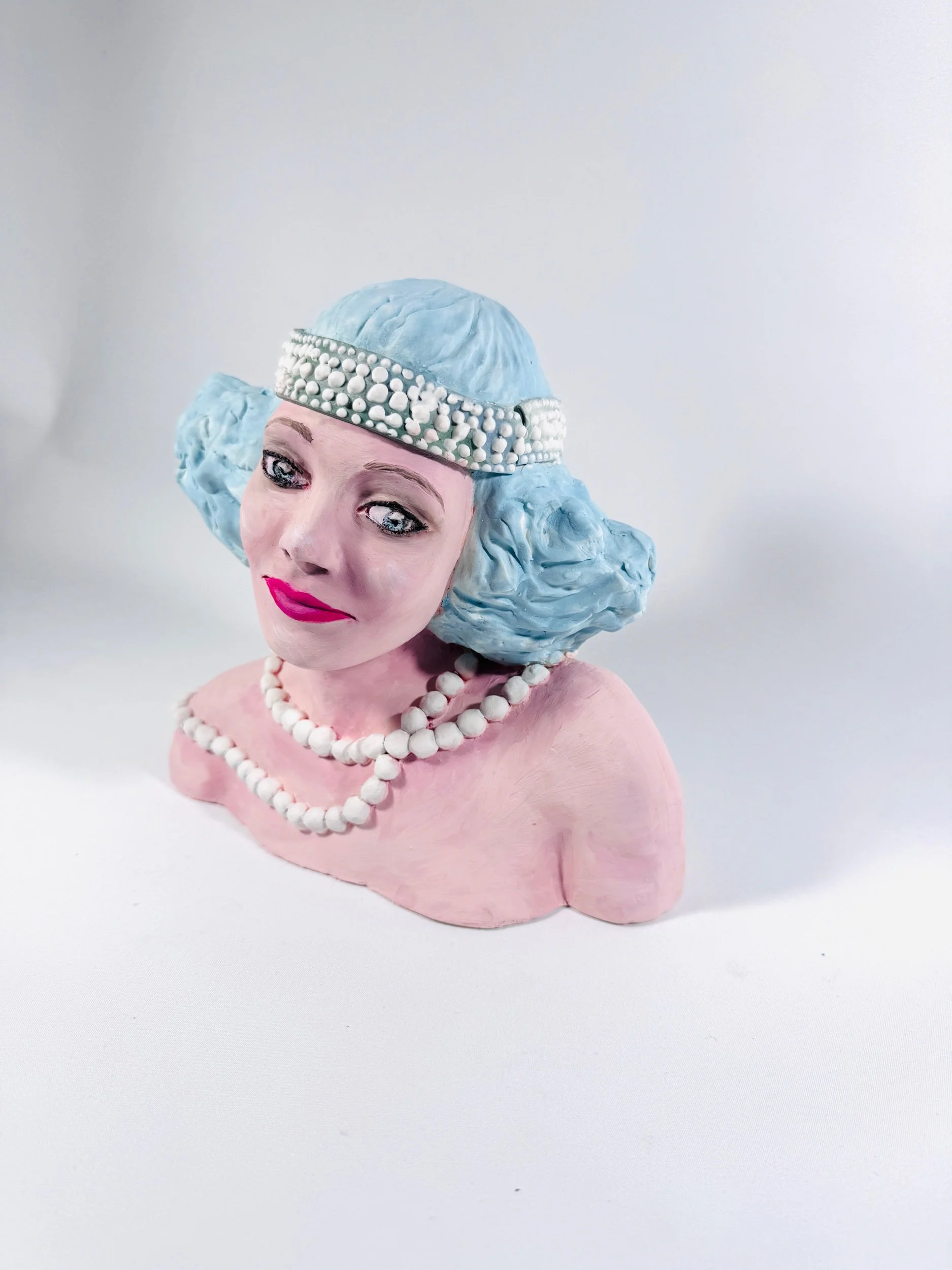 A porcelain study of a retro style lady. Painted in artist acrylics to provide detail and texture. She’s one of a kind so keep her away from damaging weather and sun.