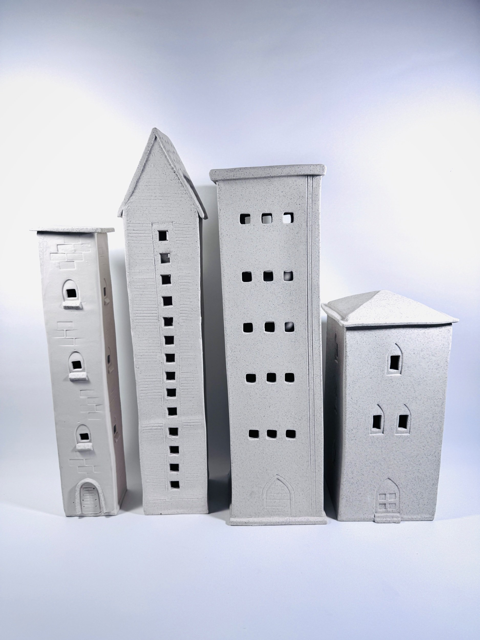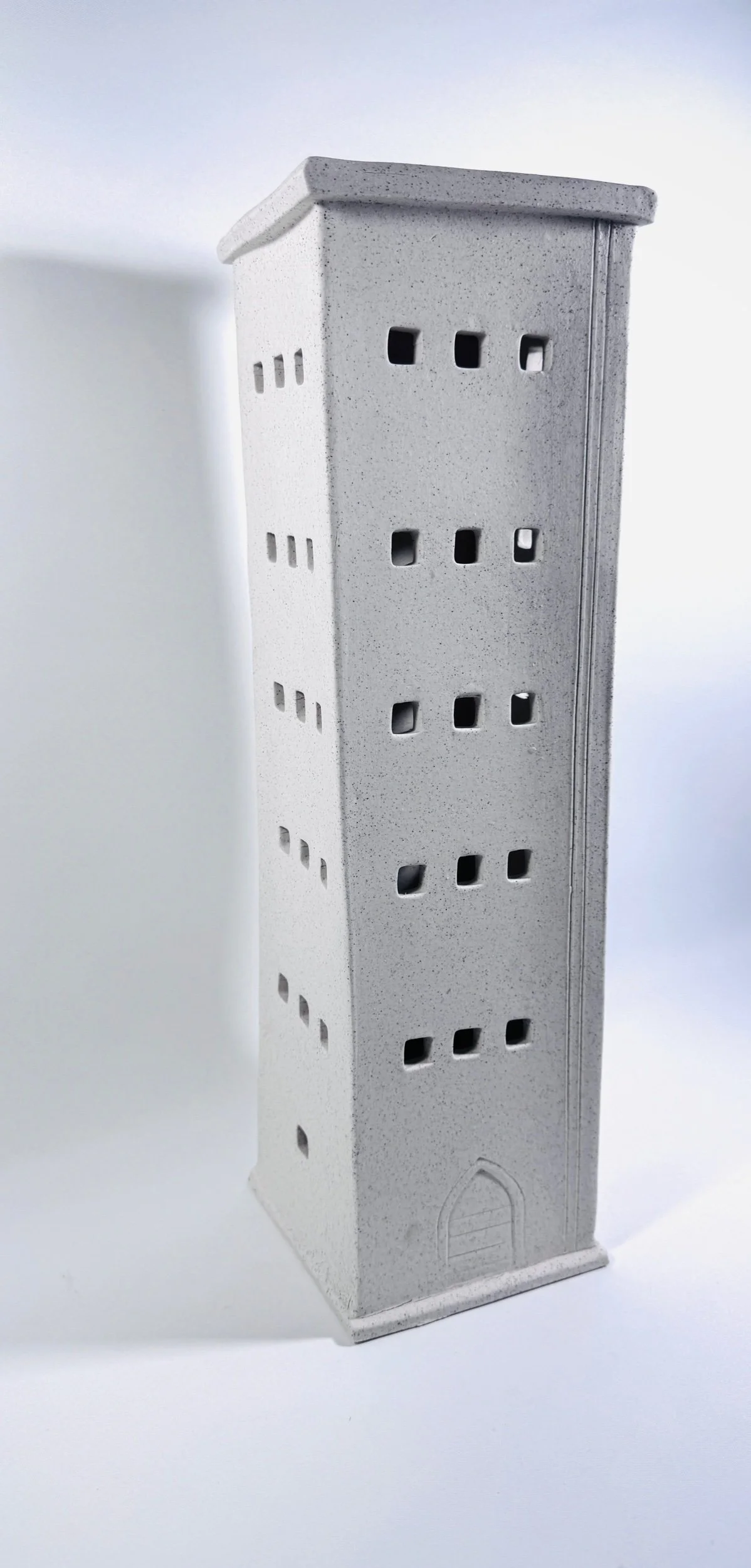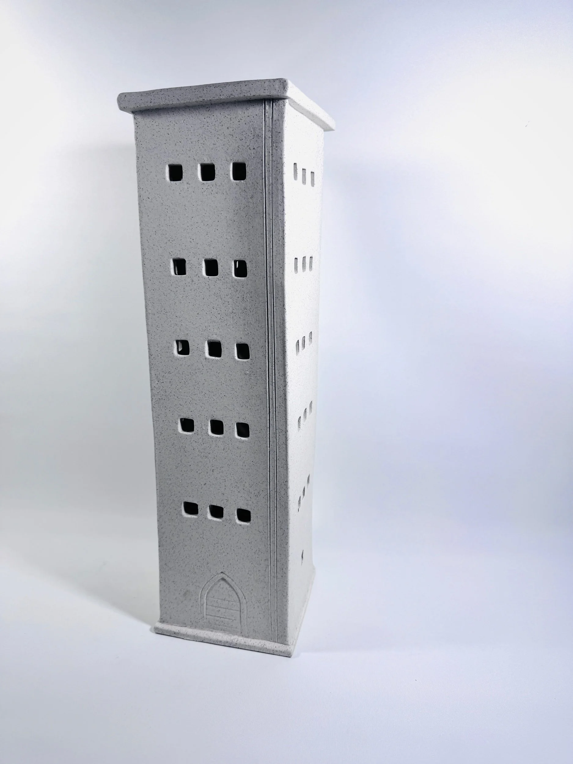 a tall ceramic tower with tiny windows makes a great ornamental piece and can be coupled with other ceramic buildings to make a great city scape